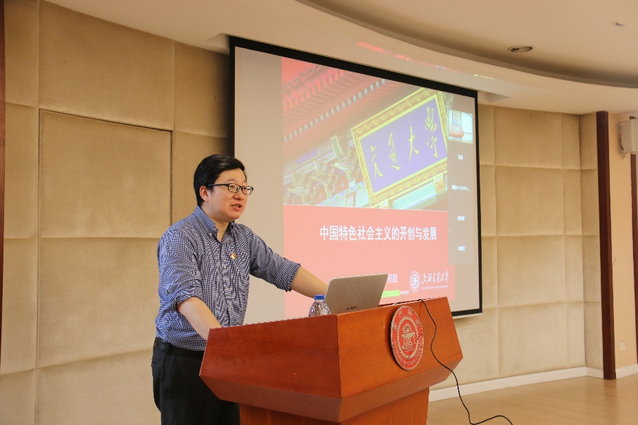 周凯以《中国特色社会主义的开创与发展》为主题,从马克思主义中国化、中国特色社会主义的开辟与发展、“习近平新时代中国特色社会主义思想”的创新与引领三个方面,带领大家回顾了中国社会主义发展历程,重温了重大历史事件,展示了改革开放四十年里的翻天覆地的变化,阐明了新时代党的建设的新要求,使在场党员备受鼓舞,明白了自己从哪来,要到哪里去,才能更好走向未来,坚守初心,勇担使命,实事求是,做到薪火相传,砥砺前行。
