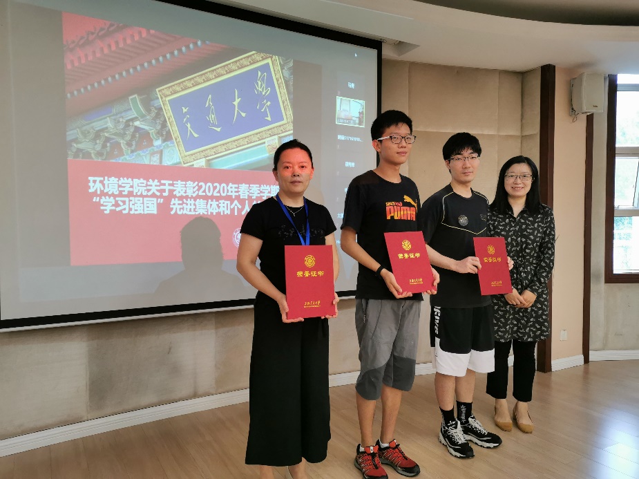 随后,学院党委副书记陈哲宣读《韩国av 关于表彰2020年春季学期“学习强国”先进集体和个人的决定》,在综合考察各党支部和学习群组个人总积分排名的情况,授予行政与实验室党支部、19级硕士生党支部、本科生党支部3个“学习强国先进党支部””荣誉称号,授予瞿赞、刘润青等20名师生“学习强国先进个人”荣誉称号。胡薇薇为获奖先进党支部颁奖,发放党建书籍《基层党务工作实用手册》。