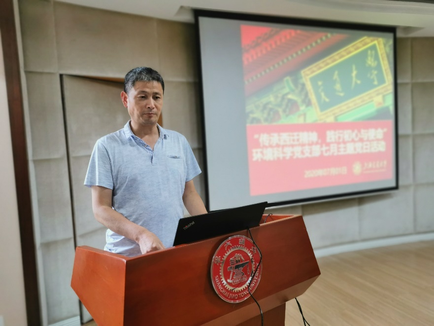 2020年7月1日下午,在中国共产党成立99周年华诞之际,环境科学党支部联合西安交大热能工程党支部通过“线上+线下”共同开展“传承西迁精神,践行初心与使命”主题教育活动。西安交大能动学院党委书记何茂刚、热能工程系主任刘银河,上海交大环境学院党委书记胡薇薇、副院长曹心德,百余名师生党员参加了活动。本次活动由环境科学党支部书记申哲民和西安交大热能工程系党支部书记徐东海共同主持。
