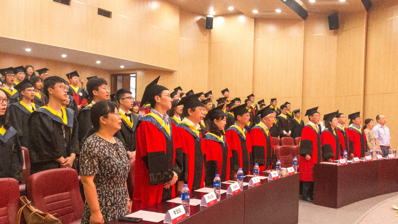 学位授予仪式在庄严的国歌声中拉开序幕。党委书记胡薇薇以《祖国需要,我的责任》为主题代表学院致辞。胡薇薇讲到,在这场抗击疫情的严峻斗争中,同学们经受了磨练,但也收获了成长。关于如何应对变化挑战?如何走好未来之路?胡老师对同学们提出了几点希望。第一,永葆家国情怀。体现交大环境人的责任与担当。第二,学会登高望远。用发展的眼光看问题,争取十年磨一剑的大作为。第三,保持永远学习的态度。在信息社会,要善于管理自己的时间资源和个人资源,勤修内功,积蓄能量、厚积薄发!