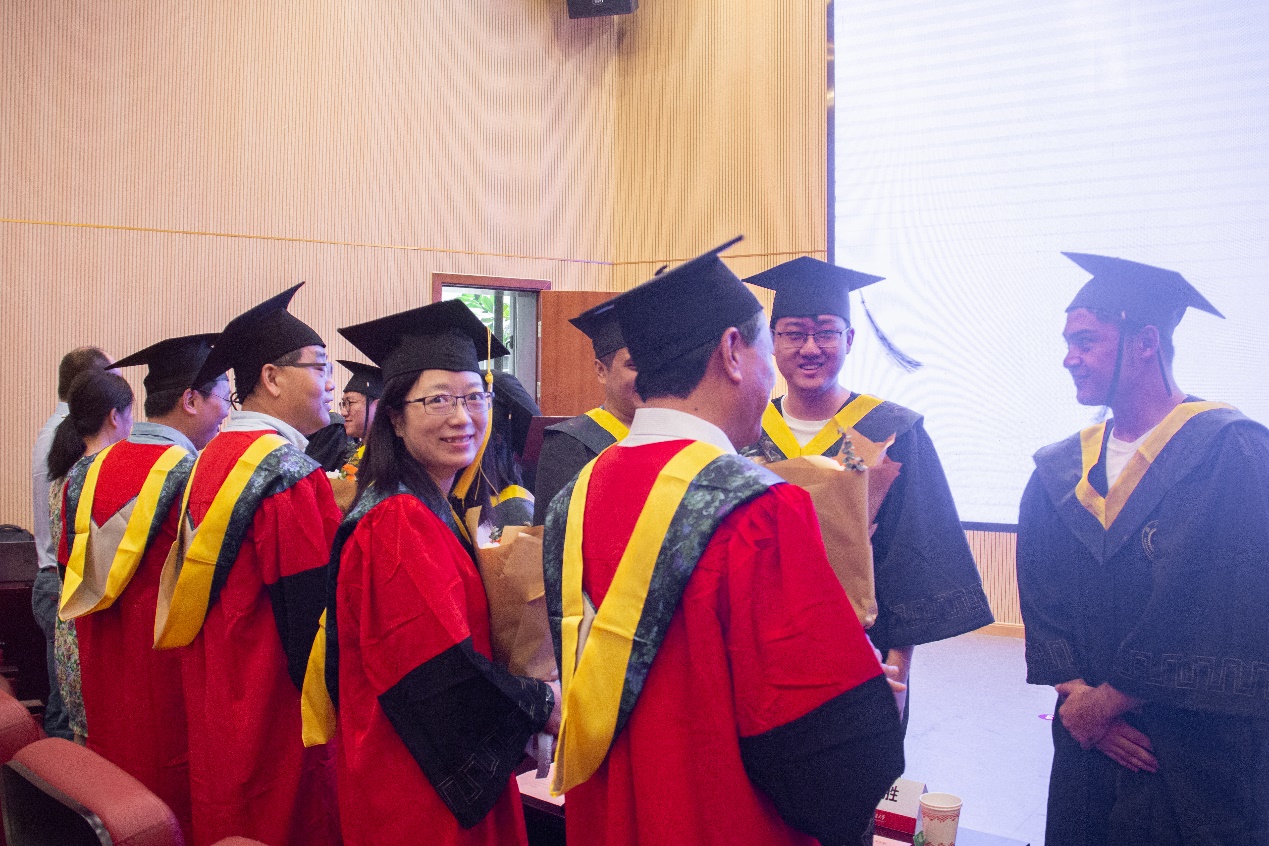 学位证书颁发及学位授予仪式上,毕业生们依次上台,接受老师拨穗,颁发学位证书,并与老师们合影留念。