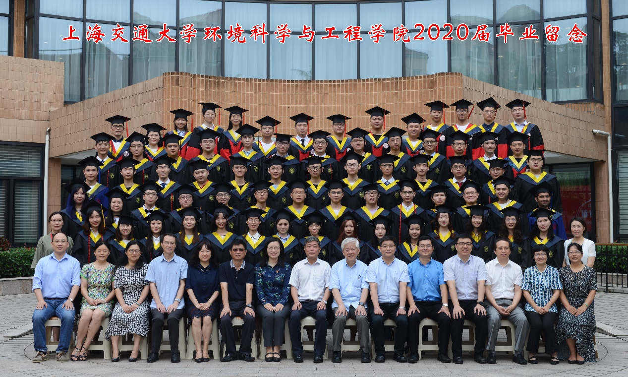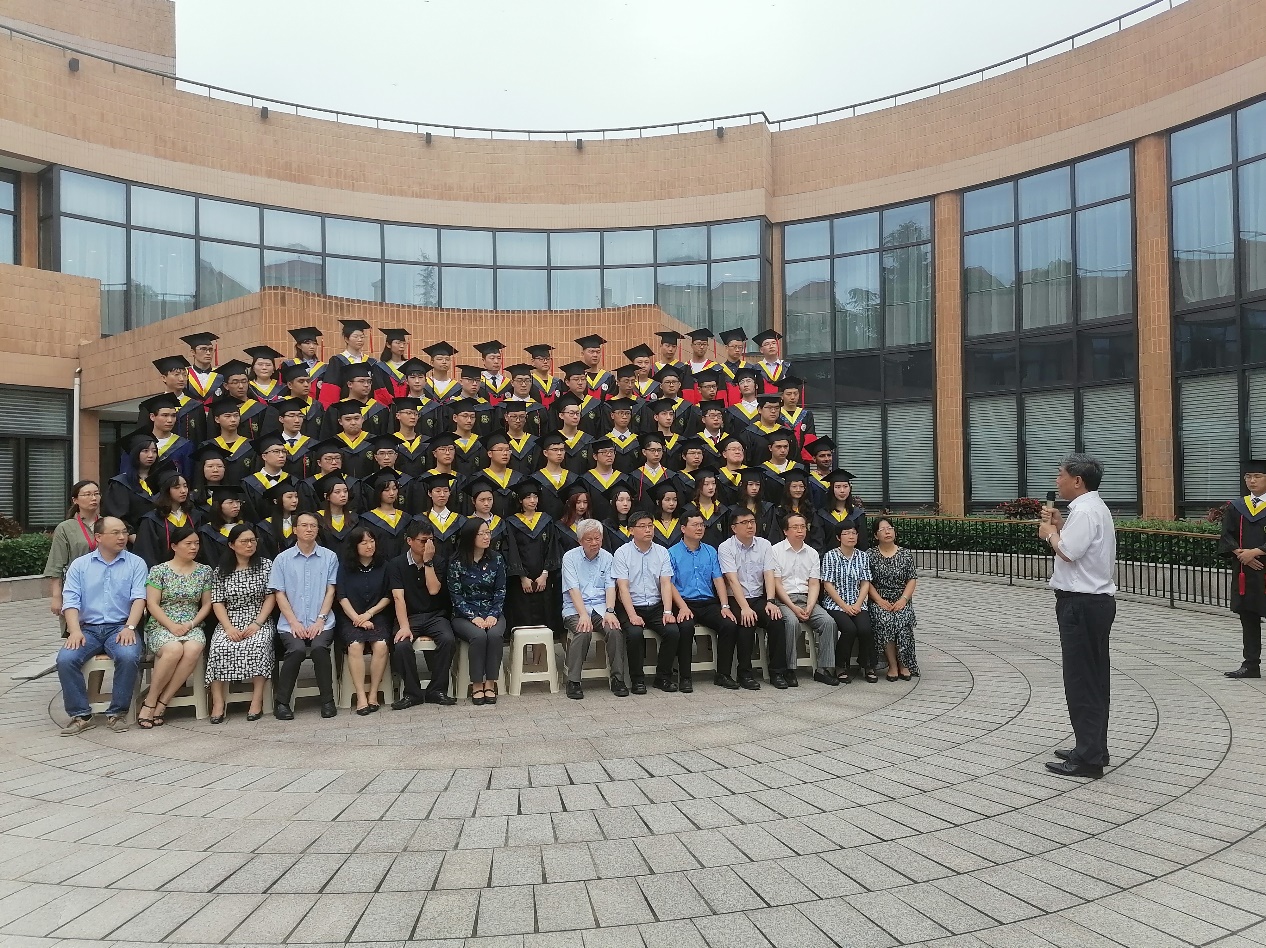 在拍照环节,由于疫情原因,参加拍照的只有部分硕士博士毕业生和大部分本科毕业生。首先由学生代表俞枫介绍了2020届环境学院毕业生去向分布。60位本科毕业生中,三分之二的同学选择包括斯坦福、耶鲁、英国帝国理工、苏黎世联邦理工、新加坡国立、北大、清华、上海交大等国内外高校继续深造,立志在学术上追求卓越;有三分之一的同学选择就业,韦彦岑同学即将参军入伍,其他同学选择进入环保相关领域工作。61位硕士毕业生中,有近10位同学选择了选调生和去基层服务,其中4位同学进入了生态环境部和自然资源部中央选调生的面试环节,8位同学前往国内外高校继续读博。11位博士毕业生中,4位同学选择留校和高校任教,一位同学入选陕西省选调生,一位同学赴山东省科技厅工作,其余几位同学全部就职环保相关领域。