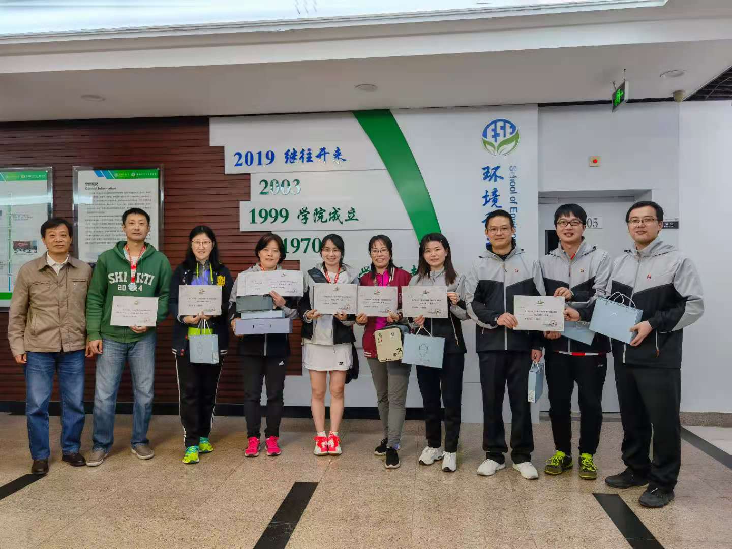 本次校运会上,环境学院女教工在100米、800米、4×100米、跳远、立定跳远、50米仰泳、4×50米游泳接力、篮球投篮等项目中表现不凡;男教工在足球射门、篮球投篮、50米蛙泳、4×50米游泳接力等项目中继续保持领先;并且斩获了羽毛球混双第二名、女双第六名的好成绩。