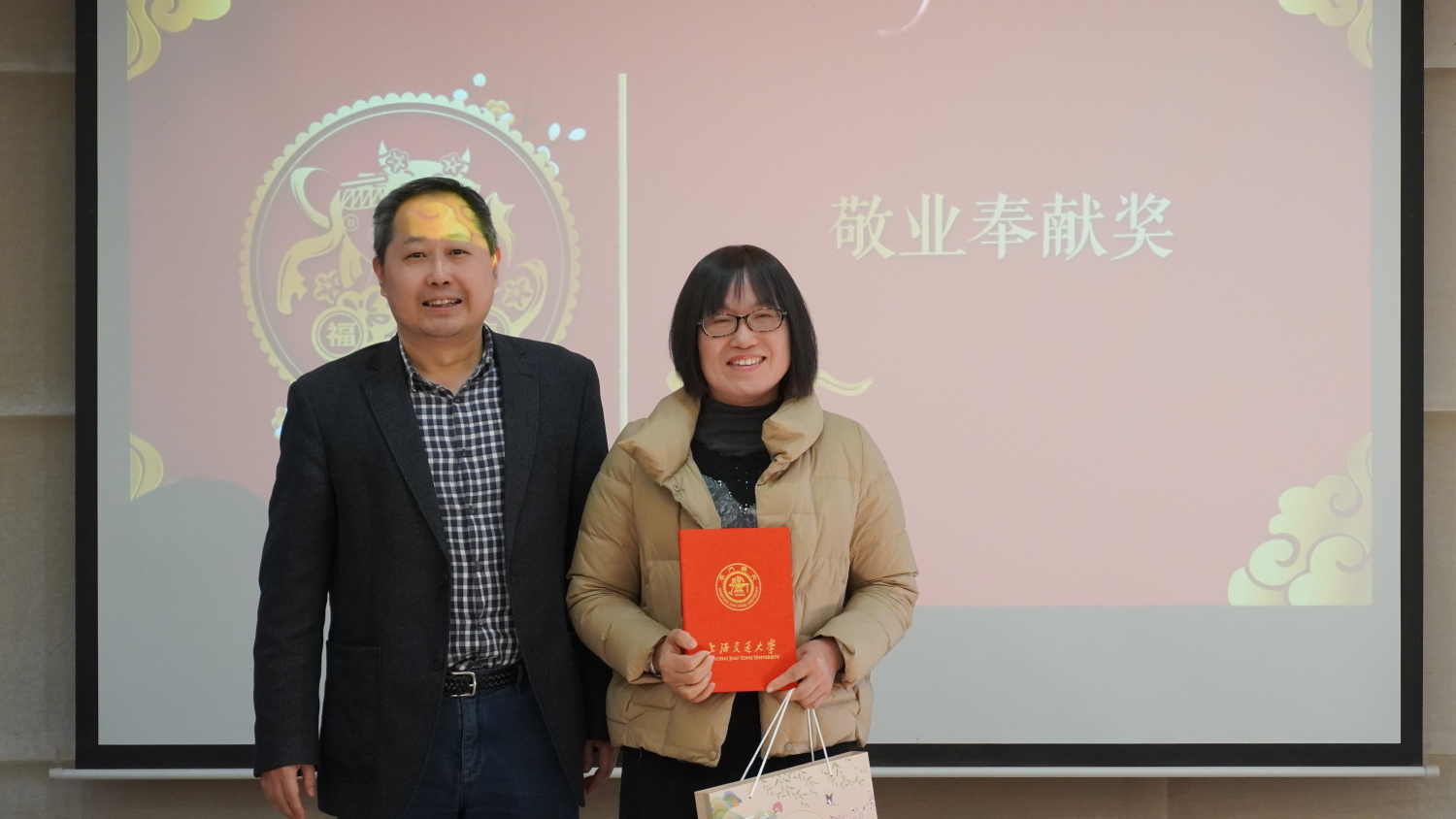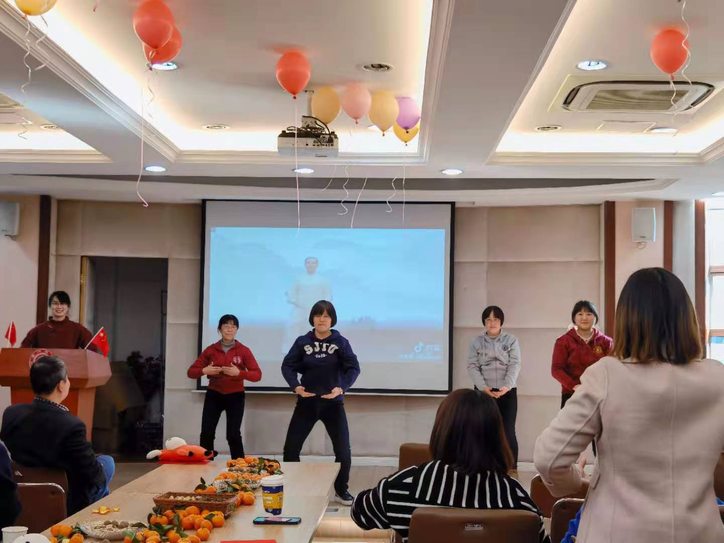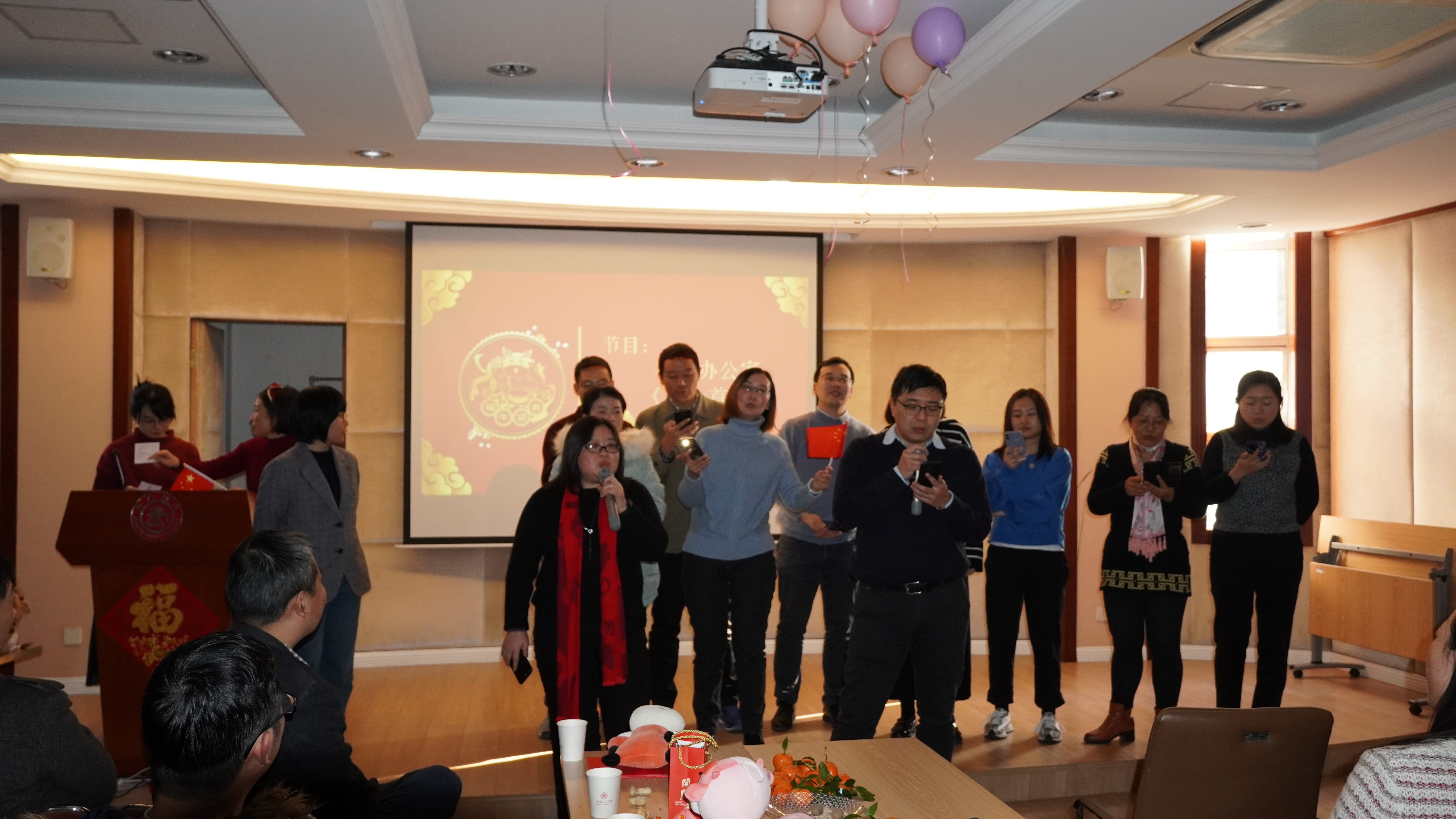 2021年1月13日,韩国av 工会精心组织了迎新庆祝活动,学院党委书记胡薇薇,院长耿涌,常务副院长曹心德,副院长刘萍、赵一新,党委副书记陈哲,党委副书记、工会主席何圣兵以及全院近80余名教职工参加了本次活动。