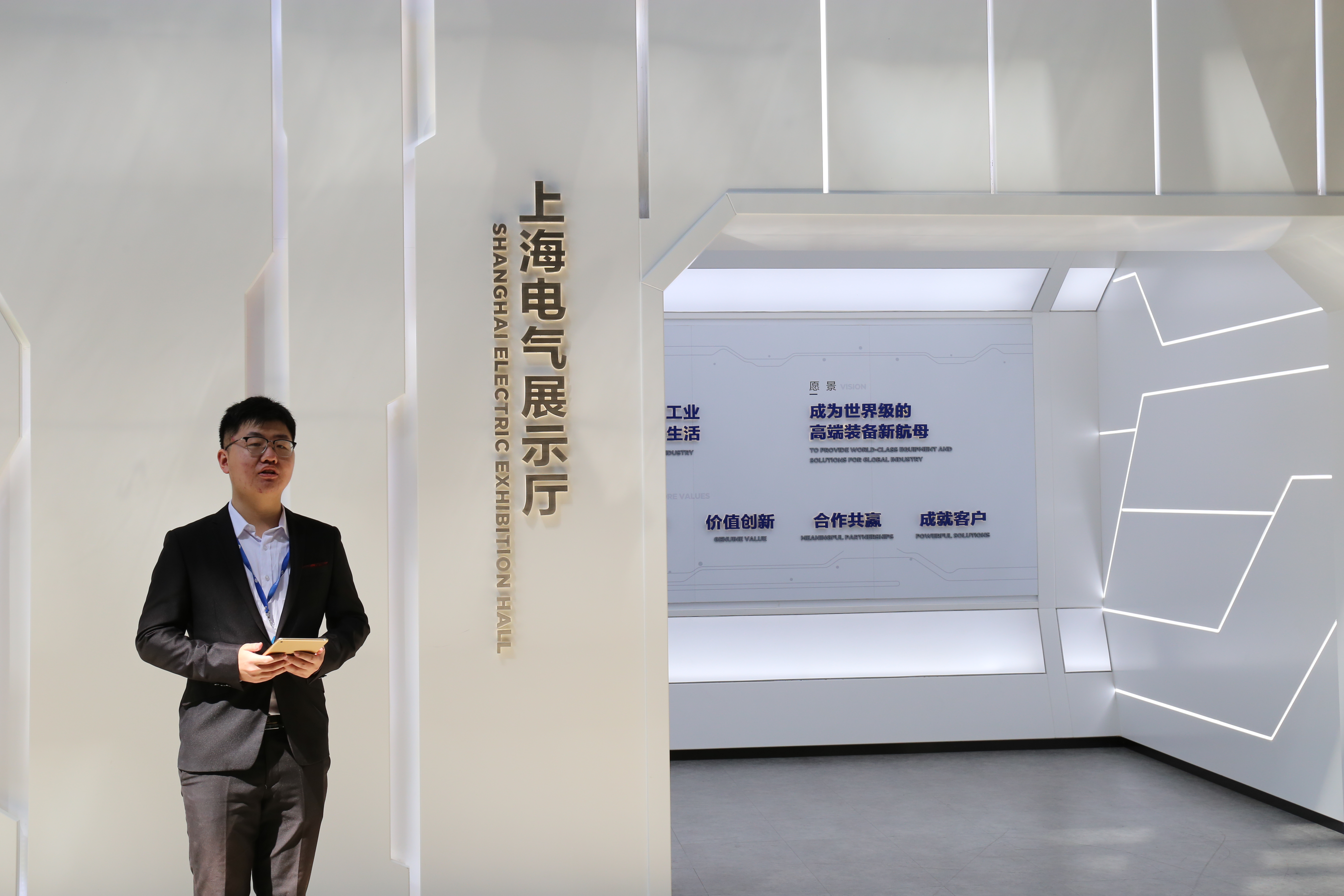 上午9点30分,集团人力资源部代表,团委书记范家威在环保集团展示厅对于上海电气集团进行了讲解介绍。上海电气是一家大型综合性高端装备制造企业,主导产业聚焦能源装备、工业装备、集成服务三大领域,致力于为全球客户提供绿色、环保、智能、互联于一体的技术集成和系统解决方案。产品包括火力发电机组(煤电、气电)、核电机组、风力发电设备、输配电设备、环保设备、自动化设备、电梯、轨道交通、医疗设备、油气海工和工业互联网等。上海电气是交大所有合作企业当中体量最大、涵盖学科最广的企业。双方在人才、科研等方面的合作不断深入,已扩展到了下属的10多家企业。