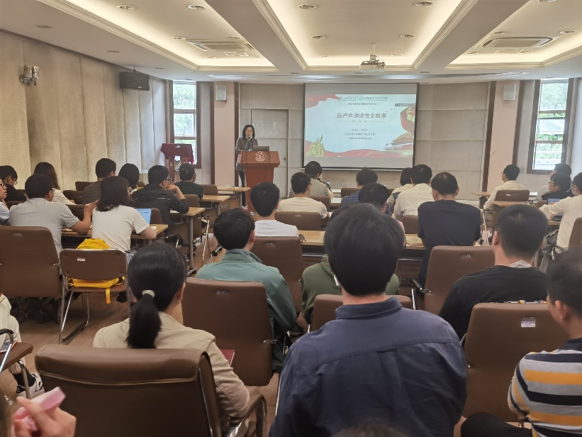 会上,李亦中教授介绍了中国电影100多年来的发展历史。中国电影虽然在近代史上遭受了西方文化的冲击,但在抗战全面爆发后始终得到中国共产党的积极支持和直接领导,大大传播了党的主张,发扬了进步电影艺术,推动了中国早期电影的发展,显示了中国共产党夺取新文化阵地的力量。他还从革命历史题材的十部优秀影视文艺作品《风云儿女》《聂耳》《国歌》《桥》等,带领大家重温红色记忆,学习革命先辈对党忠诚,为了党和人民的革命事业不畏艰险、不怕牺牲、敢为人先的精神。