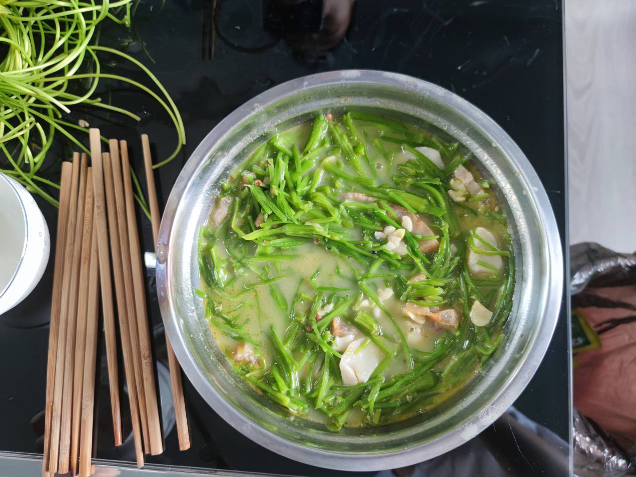 在海菜花芋头汤制作完成后,由实践团指导老师张蓉品尝并点评。“海菜花很爽口,芋头很软糯,汤也很香甜,清香扑鼻”,张老师如是说。