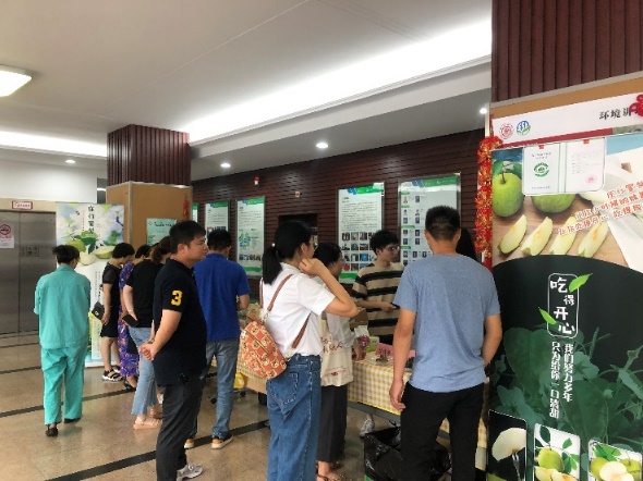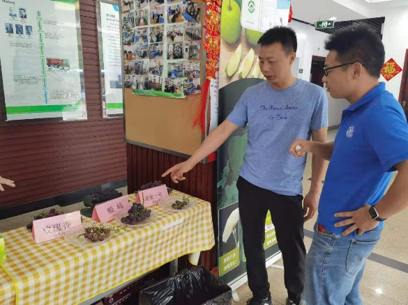 7月22日中午,奉贤区庄行镇马路村村委副书记何春艳带领所辖村众熠合作社,蔬韵农业科技有限公司和小任葡萄园7名工作人员,来到环境学院举办绿色有机果蔬产品品鉴会。