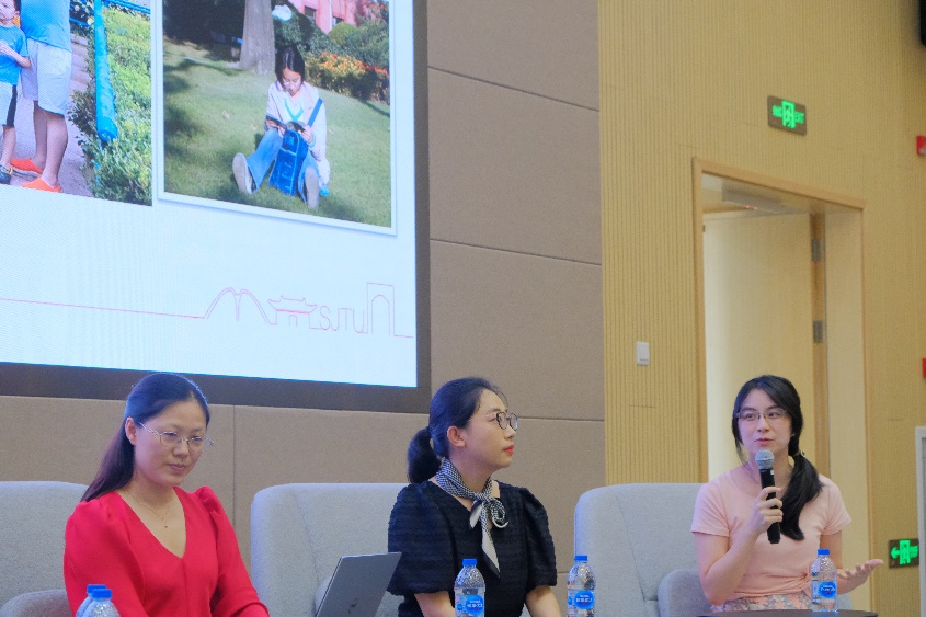 李子悦助理教授以其90后年轻科研工作者的独特视角,代表交大“未来一代”的科研力量提出其初踏科研路的迷茫与困惑,台上其他三位嘉宾围绕其提问畅所欲言,鼓励在场的女青年教师及科技工作者坚定信念,不忘初心,努力在平凡的岗位书写不平凡的人生。