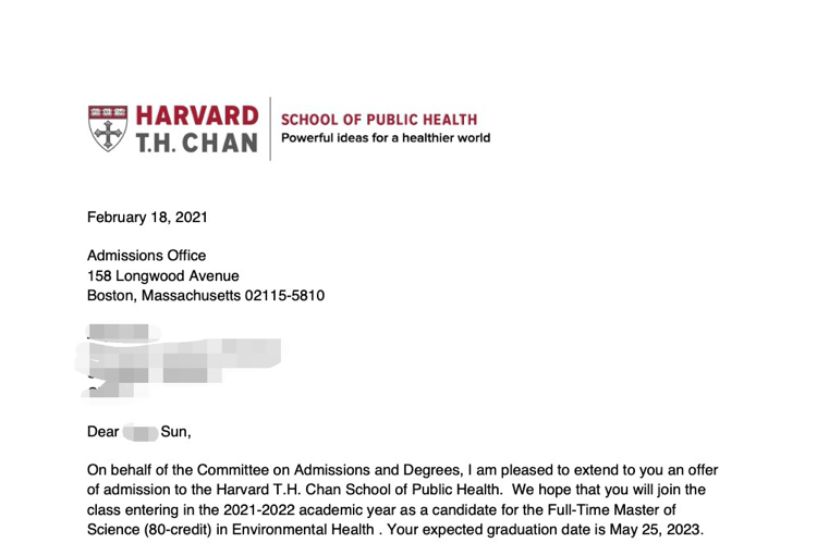 收到了哈佛、斯坦福、ETH的offer(图中为哈佛)