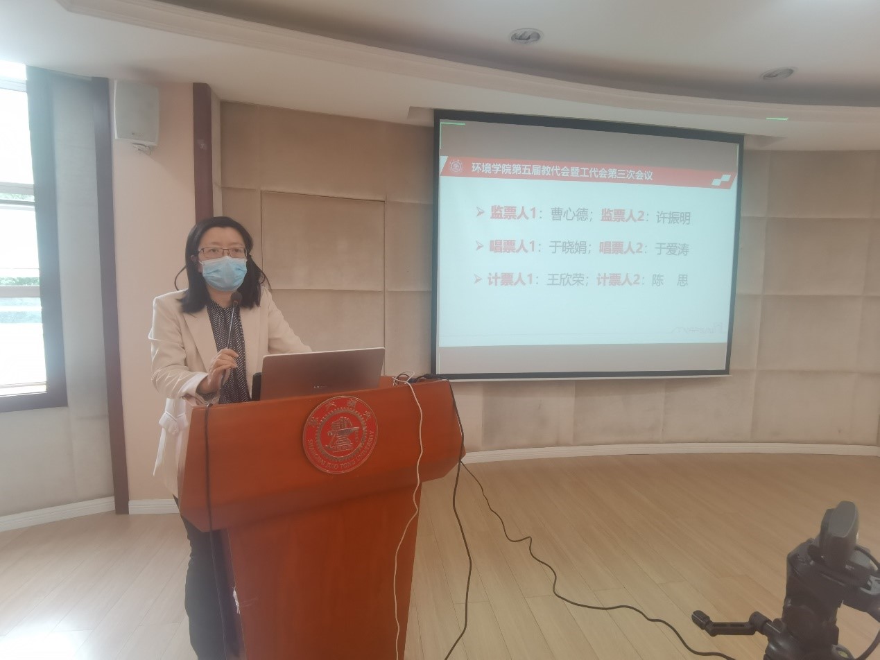 2021年10月25日上午,环境学院在二楼报告厅召开第五届三次教职工代表大会。校工会副主席戴宝印应邀出席并致辞,环境学院第五届教职工代表四十余人参加了本次会议。会议由环境学院党委书记胡薇薇主持。