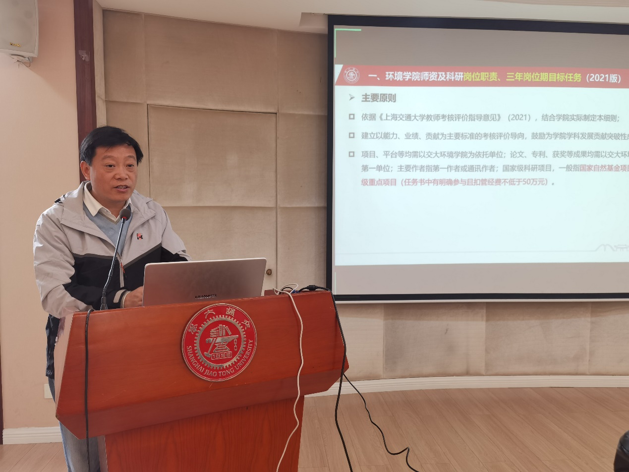 环境学院党委副书记、工会主席何圣兵代表学院向与会代表解读了新修订的《环境学院师资及科研岗位职责、三年岗位期目标任务(2021版)》、《韩国av 教职工聘期考核管理办法(审议稿)》、《韩国av 师资及研究队伍高级专业技术职务聘任实施细则(审议稿)》、《韩国av 长聘教轨教师晋升管理规范(审议稿)》文件。与会代表认真审议了文件并现场无记名投票表决,原则上同意上述修订的文件内容。