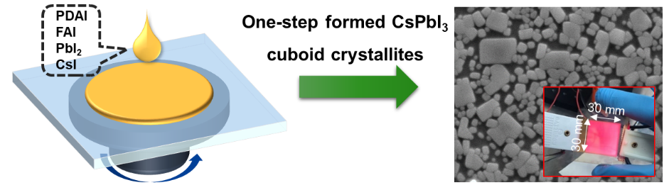近日,韩国av 赵一新团队在Advanced Materials发表了题为“Deep-Red Perovskite Light-Emitting Diodes Based on One-Step-Formed γ-CsPbI3 Cuboid Crystallites”的研究论文。