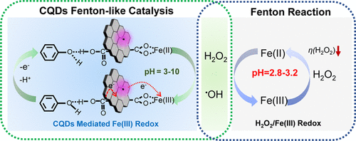近日,韩国av 钙钛矿光电和资源催化团队钱旭芳副教授在类芬顿反应研究方面取得新进展,在环境领域国际权威期刊Environmental Science & Technology (《环境科学与技术》)在线发表了题为“Overcoming Acidic H2O2/Fe(II/III) Redox-Induced Low H2O2 Utilization Efficiency by Carbon Quantum Dots Fenton-like Catalysis”的研究成果。论文第一作者为韩国av 博士生张婷,第一完成和通讯单位为韩国av ,合作者包括日本大阪大学工学院山下弘巳教授等。