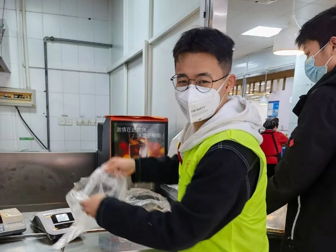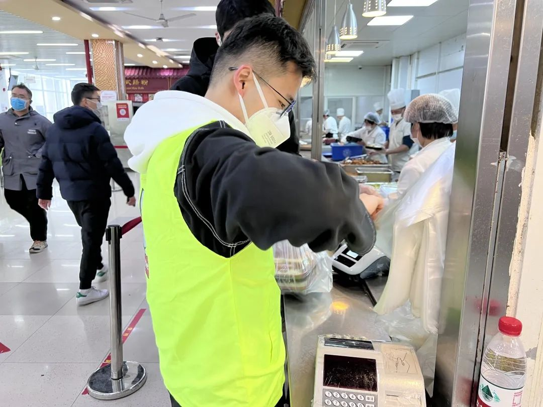 校园闭环管理以来,20级硕士生党支部积极响应号召,支部党员与积极分子以四餐为阵地成立后勤保障组,负责维持就餐师生有序排队,引导师生避免堂食,协助餐厅工作人员加快备餐速度,并为其他点位的志愿者提供餐食保障。支援后勤一线的环境人们坚守岗位、全力投入疫情防控工作,用行动诠释了他们是最可爱的守护者!