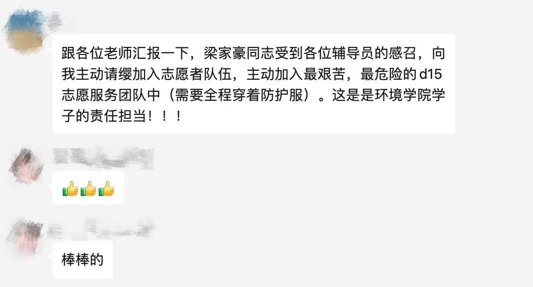 “我一看到链接就立刻点进去填写表单上传,勾选了所有我能勾选的工作组,提交前的那行‘一旦提交便不得撤回’也丝毫没能阻拦我,中午便收到通知让我加核酸组志愿者的群。面对来势汹汹的病毒,我知道这是我贡献自己的力量的时刻!”