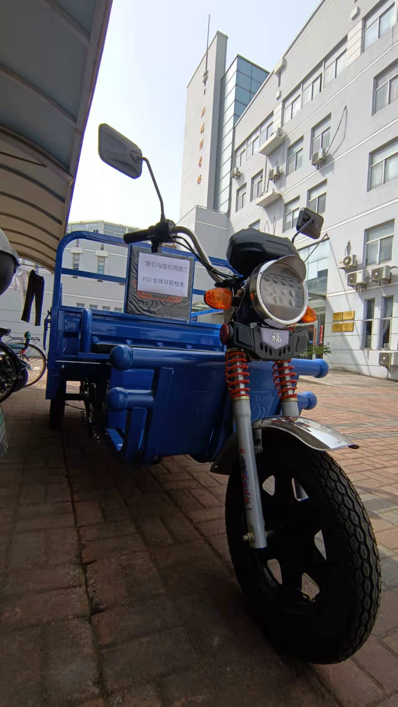 环境学院本科2003级全体校友时刻惦念着母校的平安,声声关切,道不尽海内外交大环院人的关心与牵挂。3月16日下午,F03班集体捐赠的电动三轮车顺利运送进校,正式“服役”战疫一线小分队,老师们纷纷点赞道:“感动!校友真是太给力了!”