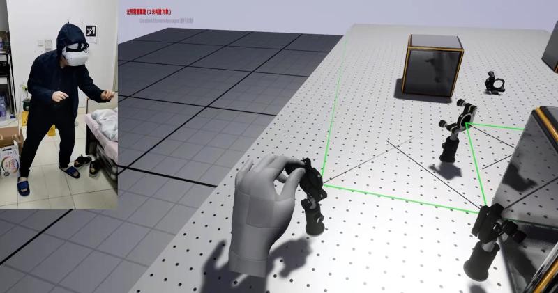 VR线上虚拟实验需要的装备非常简单,只有一个头戴显示器和一台笔记本电脑,不光是物理光学实验,也可以扩展到化学、电子线路和工程类实验。严增泉说,他对这套虚拟装置很有信息,未来如果利用低成本的深度相机结合“数字孪生”技术,对各实验室进行大尺度的超清三维实景重构,将数字孪生的实验室对象整合至线上平台,还有可能实现对校内实验室的线上沉浸式交互与导览,实验人员也许远程就可以对实验室内的器件进行实体操作。