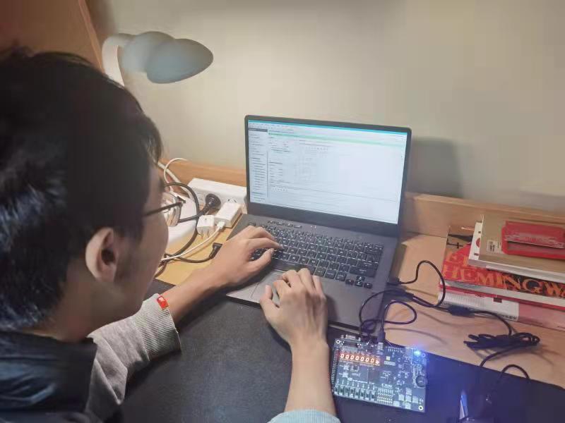 吴林晟首先把自己列入了配送人员名单,学院诸勤敏老师、大零号湾专项办公室罗金才老师主动支援配送,再综合考虑各个环节所需人手、配送工具等因素,吴林晟邀请了肖汉、焦文斌两位思政老师和宿管阿姨加入——临时“宅急送”配送队组队完成。经过器材检查、贴上标签、打包装箱、物资交接、严格消杀,63份实验器材顺利到达了同学们手中。3月22日下午,陈颖琪的线上课程“计算机组成课程实验”顺利进行。“感谢老师们的努力和每一‘棒’顺利的交接!”同学们拿到了电路板,向老师们表达了最真诚的谢意。