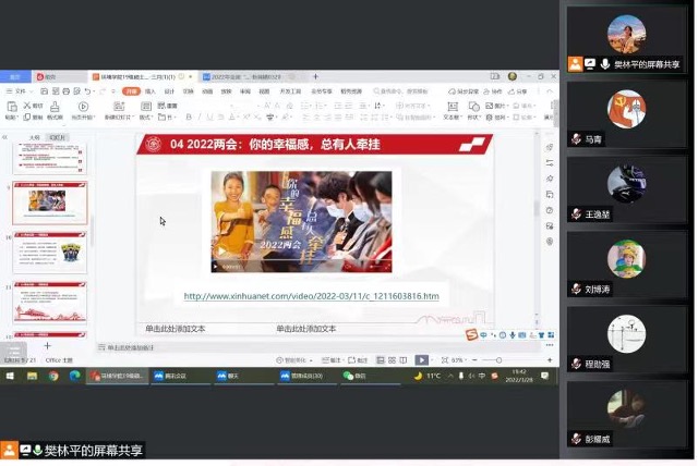 会上,支部党员黄安华结合2022年全国两会基本内容、习近平总书记在两会期间的重要讲话内容及政府工作报告等,带领大家学习了权威媒体的解读,加深了支部党员对未来政府工作重点的认知,为同学毕业就业凝聚力量、指明方向。党员樊林平以新华社“你的幸福感,总有人牵挂”的两会视频为切入点,通过分享保障就业和疫情防控方面的两会议题内容,加深学生党员对理论学习与实践练兵需紧密结合的认知。与会党员在交流中表示,越来越多的人民诉求被关注和解决,尤其是在特殊时期召开的两会,更加凸显我党坚持以人民为中心的发展理念,有利于进一步凝聚民心、振奋精神。作为新时代青年党员,不仅要深入学习习近平总书记的重要讲话精神,更要找准方向,锤炼过硬本领,让青春之花绽放在祖国最需要的地方!