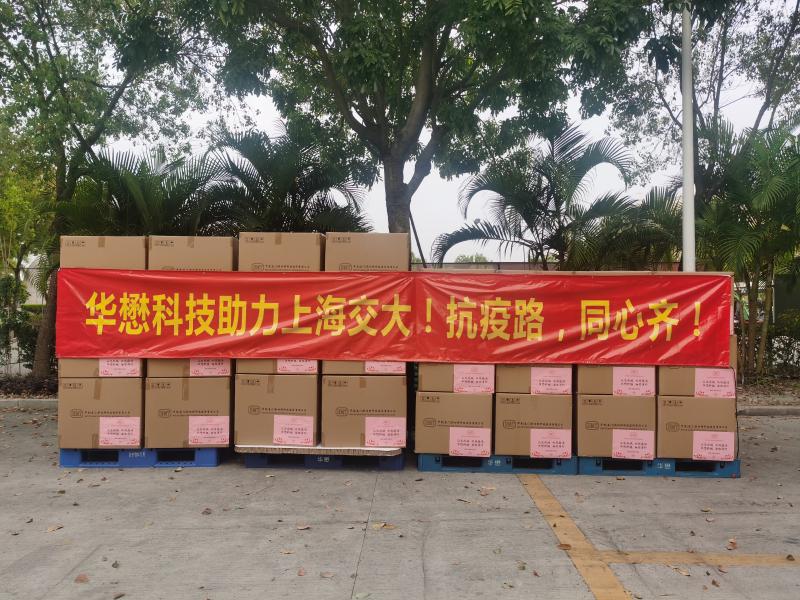“抗疫路,同心齐!”华懋科技捐赠一次性口罩、N95口罩、防护服共58箱。因为疫情管控,物流公司无法配送,电院2008级毕业校友陈龙不辞辛劳,冒着瓢泼大雨,用私家车从下午4点一趟接一趟帮忙运送,不言一句疲惫,惟愿争分夺秒,直到晚上8点终于顺利交接全部物资。