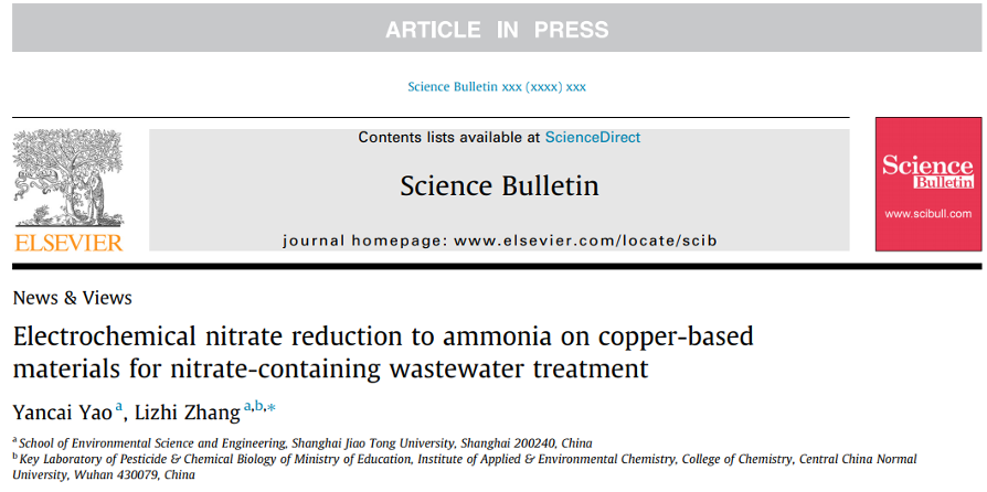 近期,韩国av 铁环境化学与污染控制研究团队(张礼知教授团队)在综合性Top期刊Science Bulletin发表了题为《Electrochemical nitrate reduction to ammonia on copper-based materials for nitrate-containing wastewater treatment》的视点文章,第一作者为么艳彩助理教授。